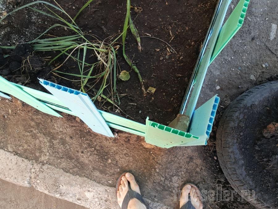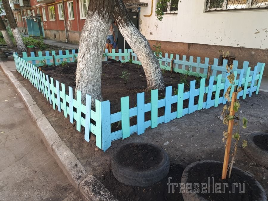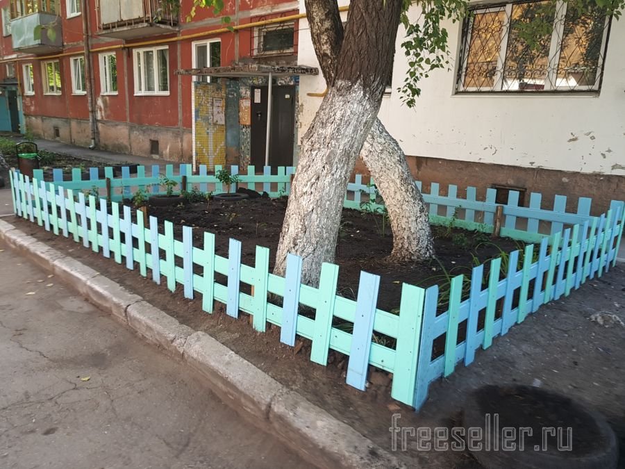 Представляет собой несколько деревянных столбиков, вбитых по углам + промежуточные столбики.