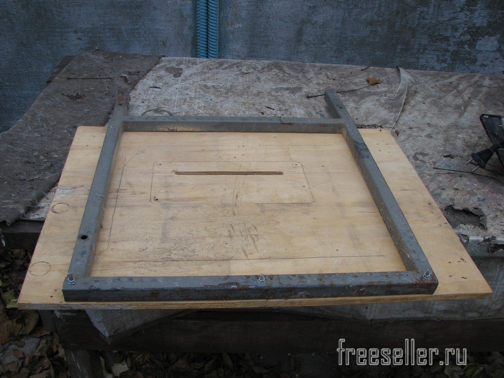 Основой столика послужил каркас из профиля 25х25. Я его не варил специально, нашлись обрезки в гараже. При толщине фанеры в 12мм можно было вообще обойтись без каркаса или сделать его из деревянных брусков. Но что было то и использовали. К каркасу прикреплена фанера (фанера паршивого качества, от палетов, еле разобрал их, да и сама фанера оставляет желать лучшего), сначала я сверлил насквозь отверстия и крепил на винты М4, но потом попробовал просто просверлить профиль сверлом 2,5 или что-то около этого и ввернуть черные шурупы по дереву 3,5х25. На удивление получилось прочно и бюджетно.