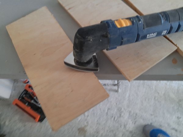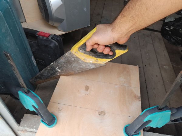 Для начал заехал в гараж, взял кусочек фанеры, отпилил 3 куска нужного размера.