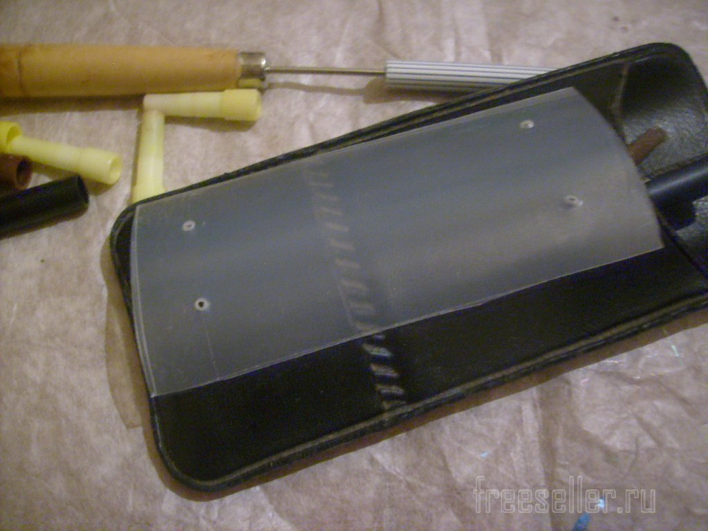 Проплавляем отверстия с помощью раскалённого гвоздя и пассатижей.