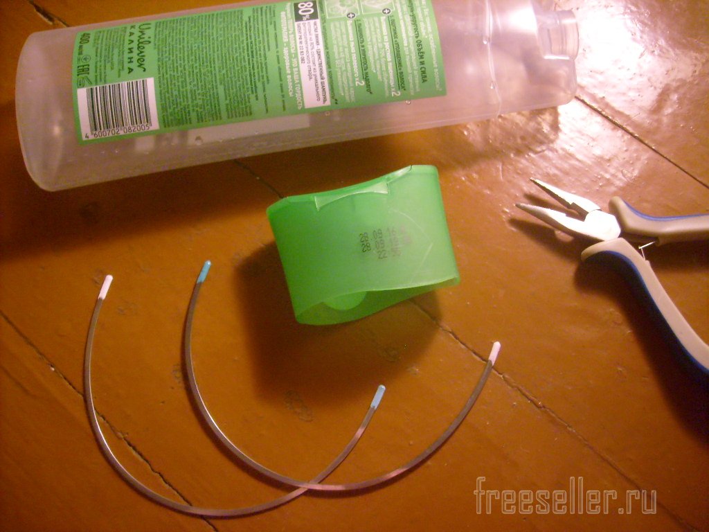 Смастерить такую подставку можно из фрагмента пластика и так называемых "косточек" от дамского белья.