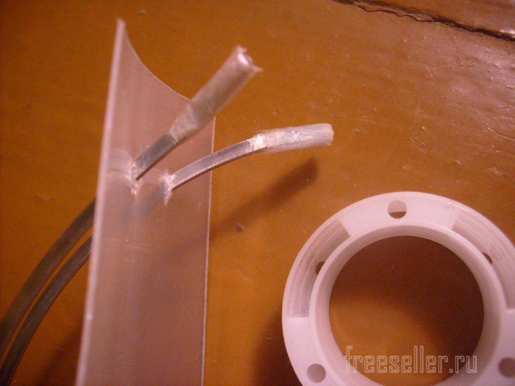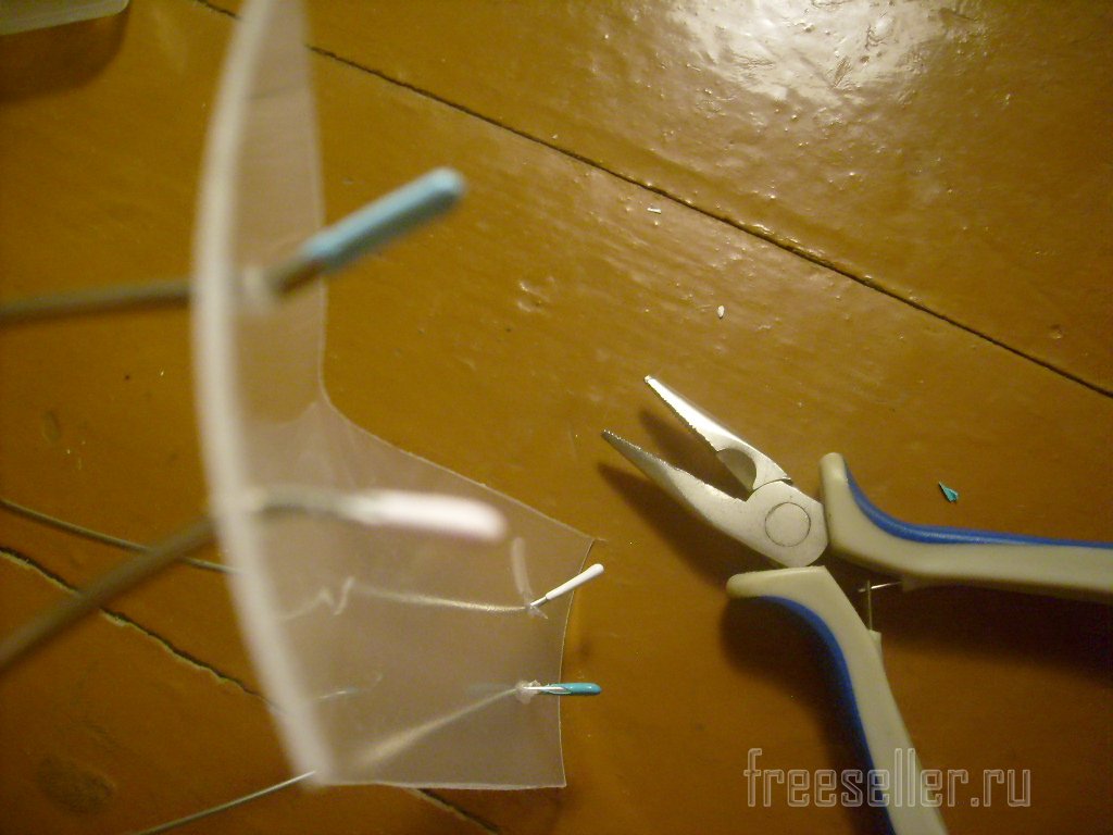 С помощью пассатижей отгибаем концы в 1 см под основой к её внешним краям.![]()