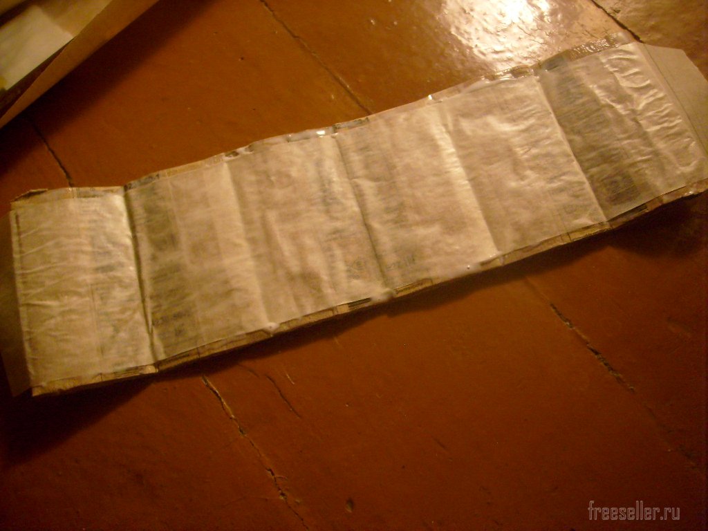 Склеиваем три сплющенные упаковки в одну полоску. Для этого лучше подходит скотч.