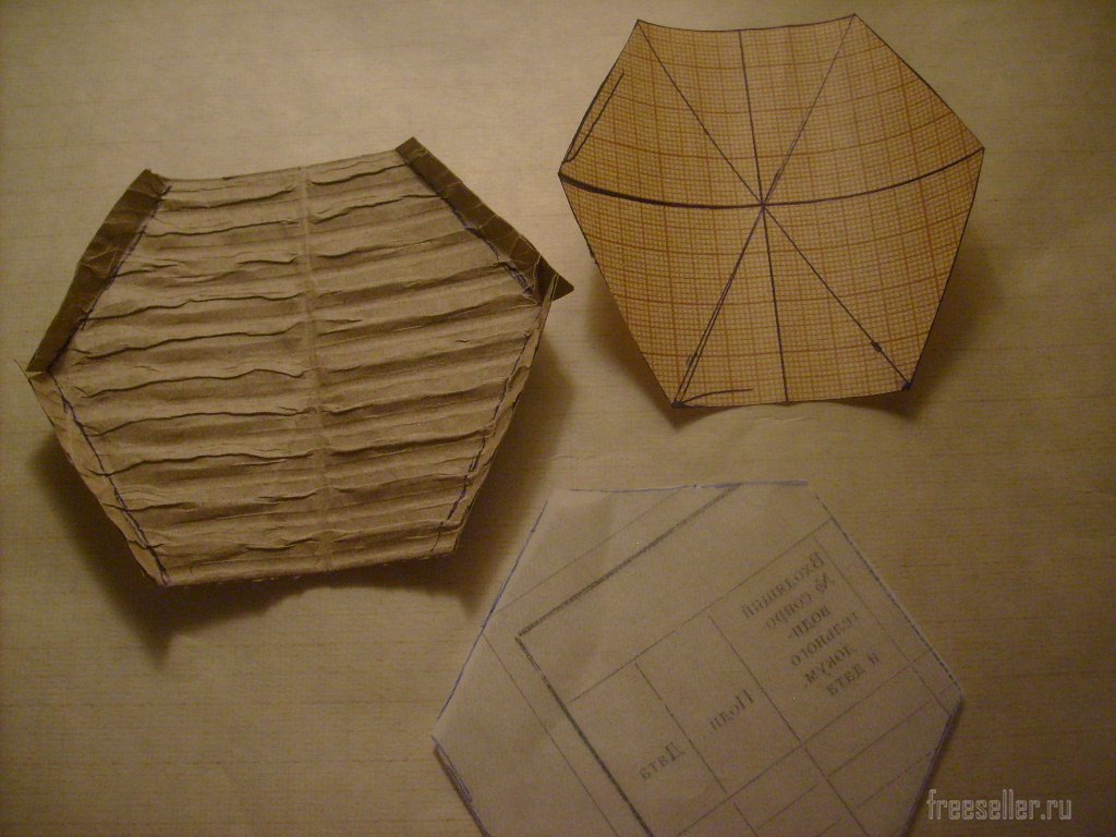 По размеру сторон шестигранника строим шаблон дна и крышки.