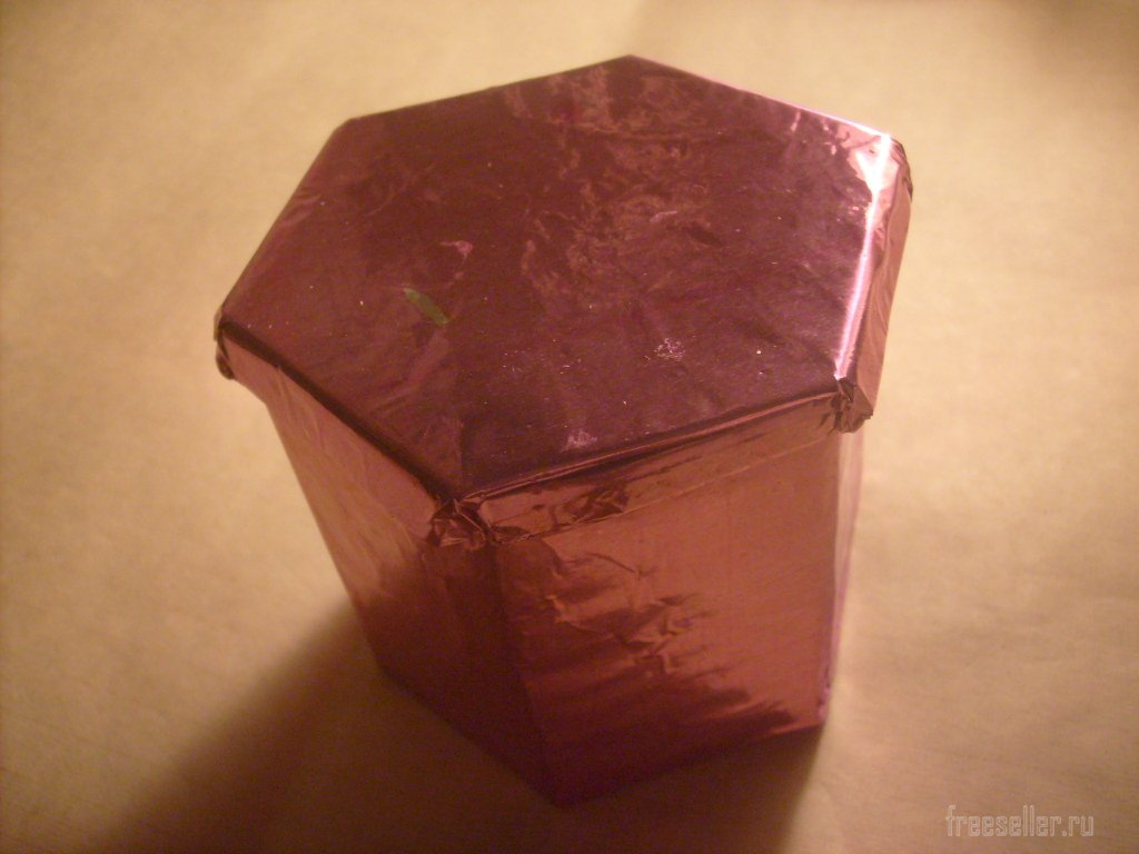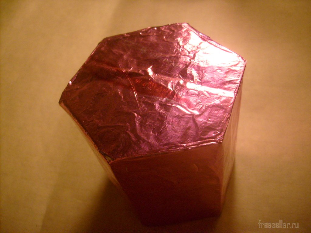Из картона вырезаем и склеиваем крышку. Оклеиваем её фольгой со всех сторон.