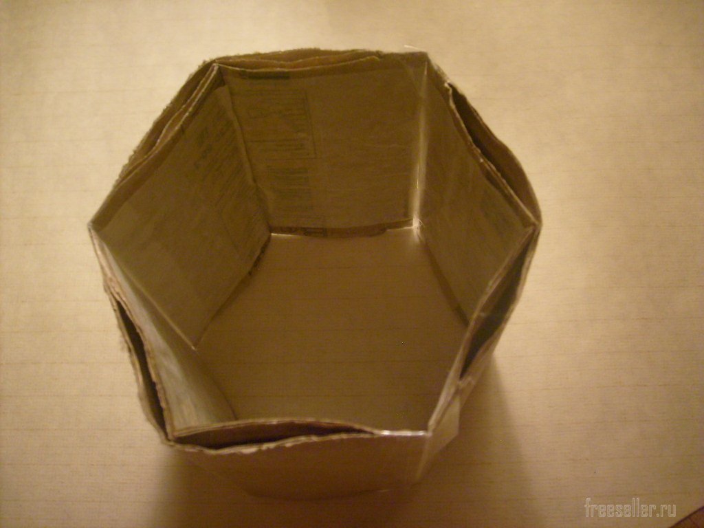 По шаблону вырезаем из четвёртой упаковки дно с припусками на склейку.