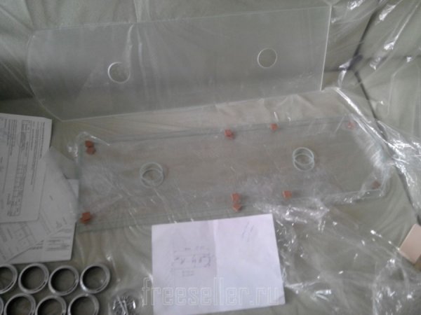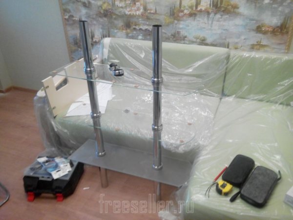Сборка конструкции со стеклянными полками на нержавеющие трубы - и фиксация на промежуточные опоры