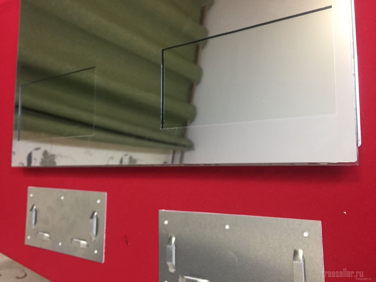 Зеркало почти готово, осталось сделать крепление к стене, делается это с помощью крепежей для зеркал, тоже продается в строительном магазине. Срезаем пленку по контуру крепежей с задней стенки зеркала и обрабатываем стекло уайт спиритом