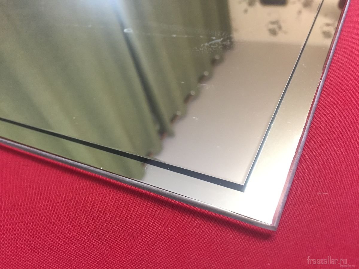 Второе стекло покрываем пленкой с двух сторон, но с одной стороны мы отступаем 1,3 см. от края и отрезаем пленку по контуру стекла по линейке как на фото, это будет заднее стекло зеркала.