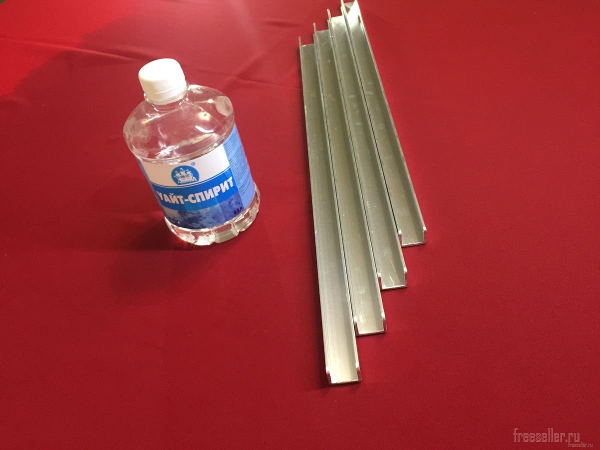 Затем обрабатываем (протираем) края стекла и профиль уайт спиритом и даем ему высохнуть.