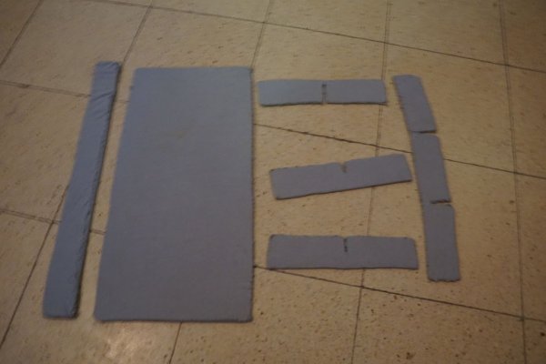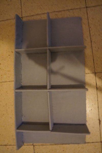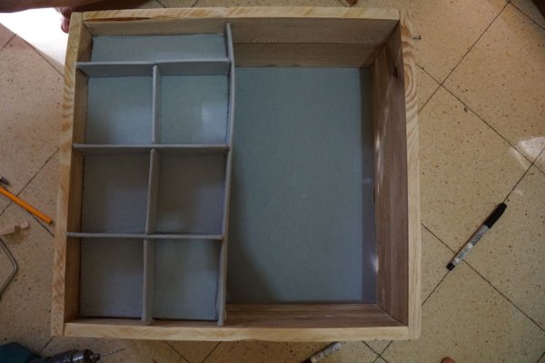 Из картона делаем разделители для ящика и обтягиваем их тканью.