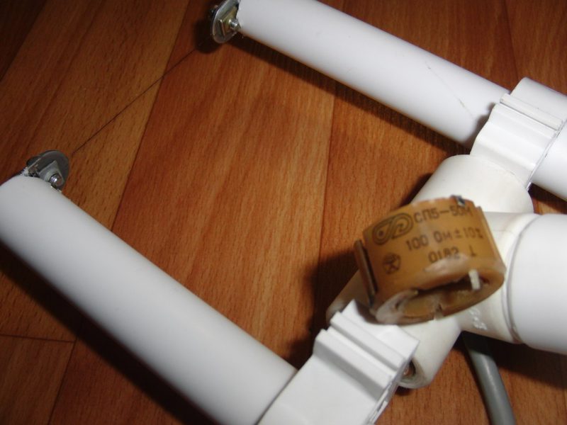 Нихромовая нить можно взять с старого с переменного резистора СП-5. Крепим ее в мебельных уголках, которые впаиваем в трубу путем нагрева.