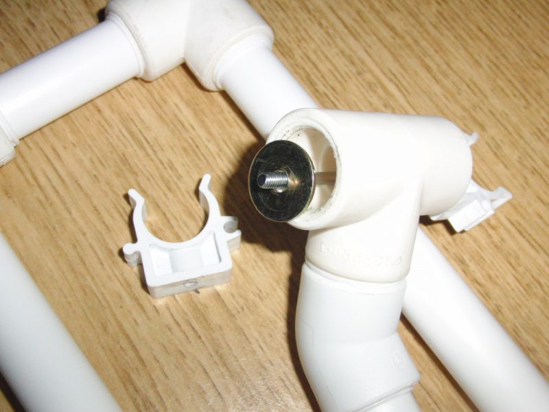 3-я заготовка - делается из 2-х фиксаторов трубы, шпилька фиксируется при помощи гаек в канавках держателя. не забываем использовать прокладки из шайб.