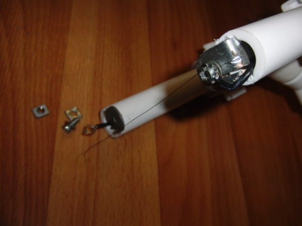 Внутри трубы проложен медный провод сечением 1.5 мм, 1 часть кабеля выходит из ручки.