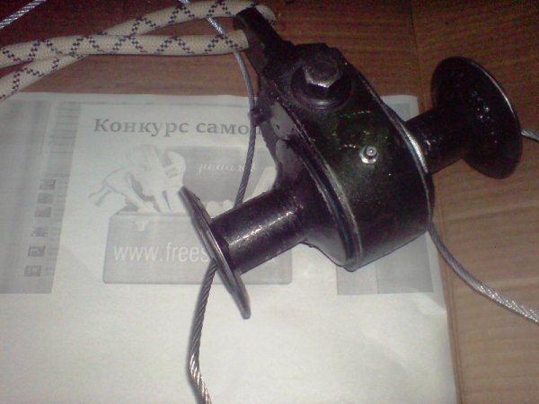 Сначала я хотел найти какой-нибудь блок для троса, но решил сделать просто уравнитель с крюком, т.к. трос наматывается практически равномерно.
