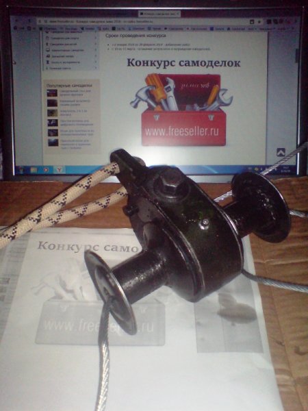 Такая лебёдка поможет не только на дороге, вернее на бездорожье, но и в гараже. С её помощью можно самостоятельно затянуть неисправную машину в гараж, на мини эстакаду (2 доски и 2 пня), так же она поможет поднять или опустить тяжесть в подвал, вынуть мотор из машины.
