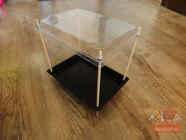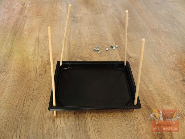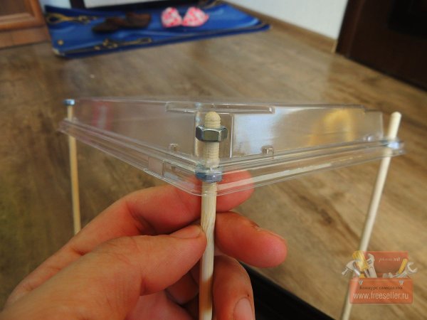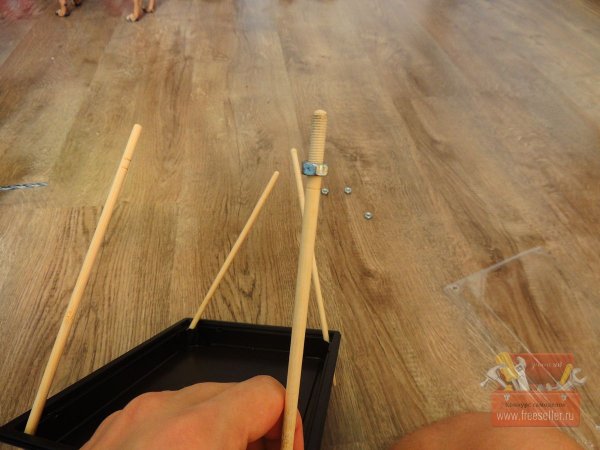Затем одеваем шайбочки и гайки М6 на палочки, они предадут вес конструкции и зафиксируют ее на нужной высоте.