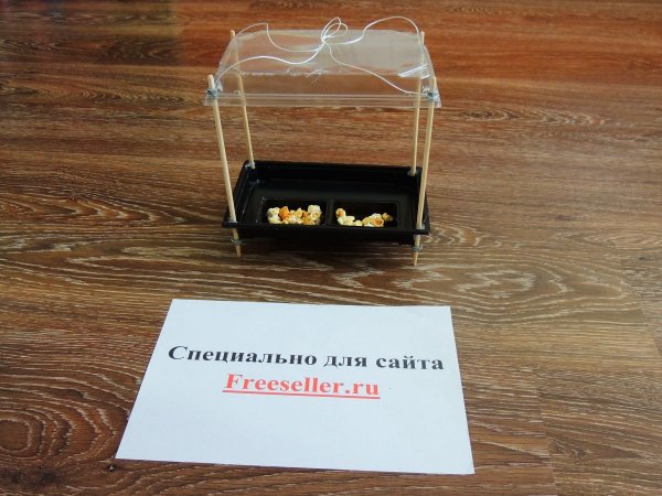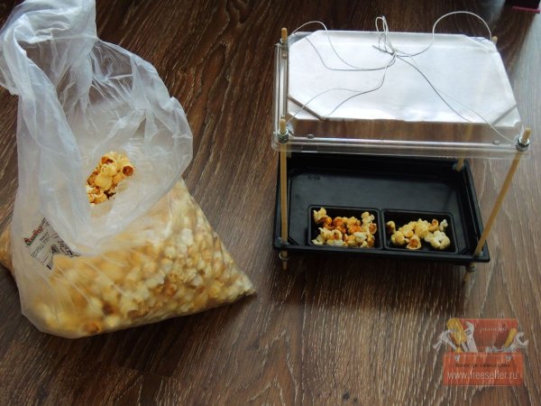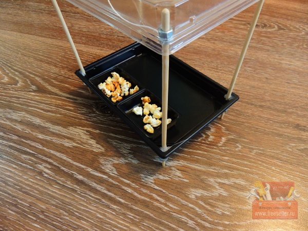 Насыпаем корм, в данном случае попкорн, на него выпал выбор моей доченьки.