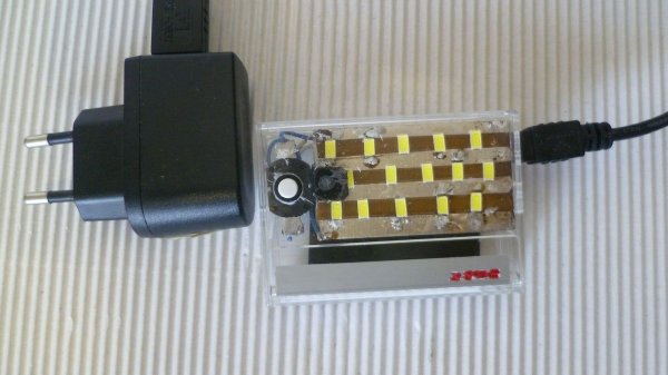 Это у меня первая экспериментальная модель фонарика. Дорожки были вырезаны резаком. Далее сделаю печатную плату методом травления. Модуль зарядки литиевых аккумуляторов TP4056 (1A 5 В) можно и не ставить потому, что в аккумуляторах от сотовых телефонов уже установлен контроллер заряда. Он защищает от КЗ,отключает аккумулятор при падении напряжения 2,2В и повышении больше 4,2В. Заряжается фонарь от обычной зарядки сотового телефона. Но удобней я думаю все таки использовать платку TP4056 потому, что там уже есть гнездо USB(проще монтировать на плате этом варианте можно заряжать любым источником питания 5В). Светодиоды можно использовать и обычные в круглом пластмассовом корпусе, но я сравнивал - светодиоды SMD 5730 все таки более эффективны. Кнопка включения использована от налобного фонаря. Для корпуса фонарика хорошо подошла прозрачная коробка от мини видеокассеты.