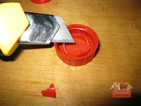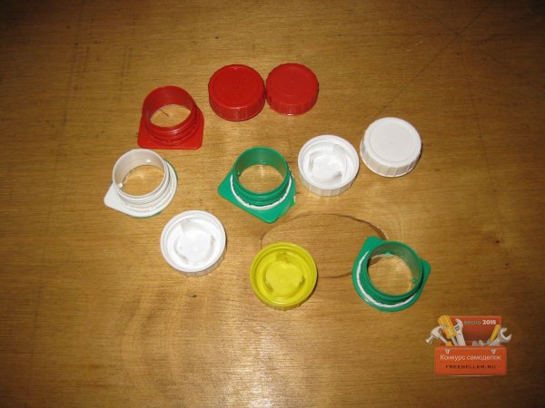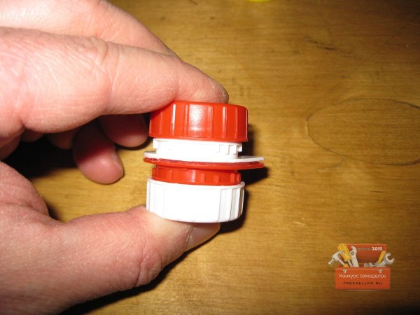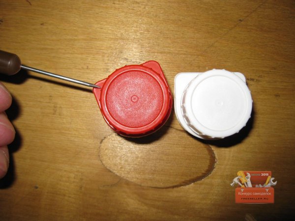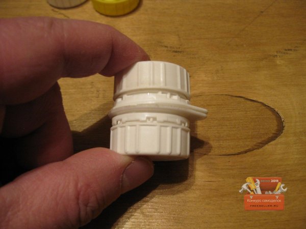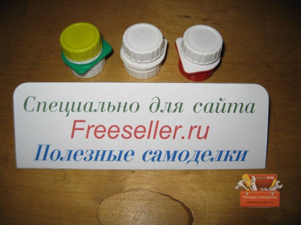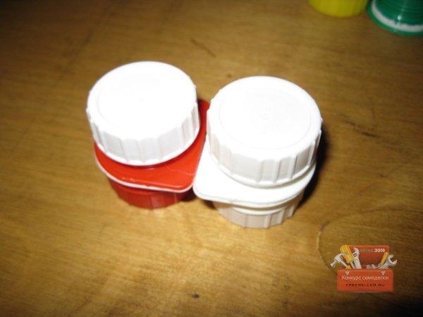 Однако надо сказать, что авторы этих работ предлагали делать такие контейнеры из крышек и резьбовых частей пластиковых бутылок. То есть, чтобы сделать подобный мини-контейнер, нужно было сначала отрезать резьбовые части горлышек от двух пластиковых бутылок, а затем зачистить и склеить их.