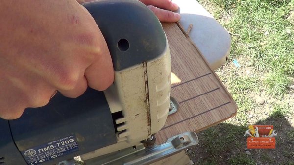 Первым делом взял деревянный брусок, разметил его: толщина - 2 см, ширина - 6,5 см, длинна - 26 см, вырезал лобзиком и зачистил наждачным кругом при помощи шуруповерта. P.S. Спасибо админу сайта за подарок, который я получил за победу в конкурсе самоделок! Шуруповерт работает отлично по сей день! Использую практически каждый день!