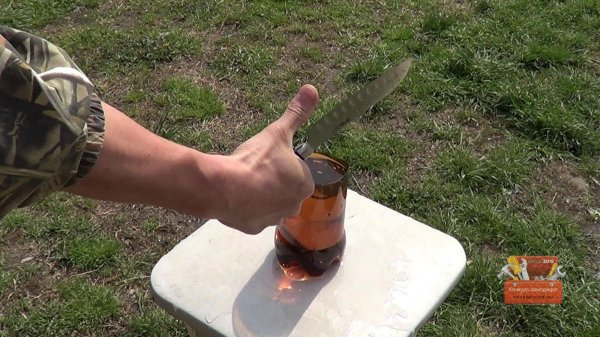 Тесть посложнее так же прошел! Пластиковая бутылка разрезалась пополам с одного удара! (в видео ниже, этот процесс можно будет посмотреть)