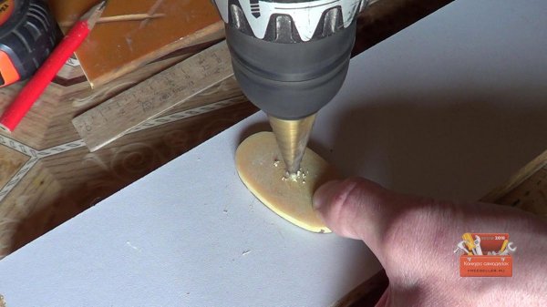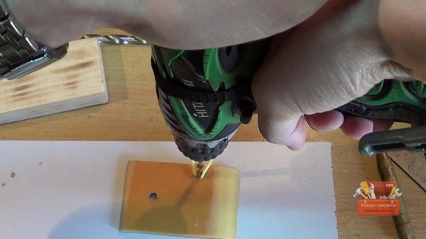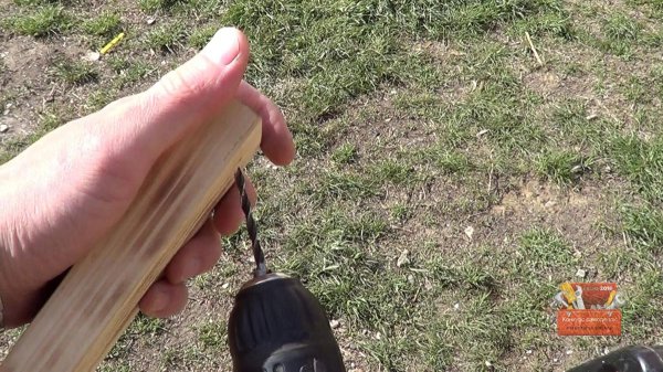 Далее под углом примерно 65-70 градусов необходимо просверлить два отверстия, в которые в дальнейшем станет направляющая стойка.