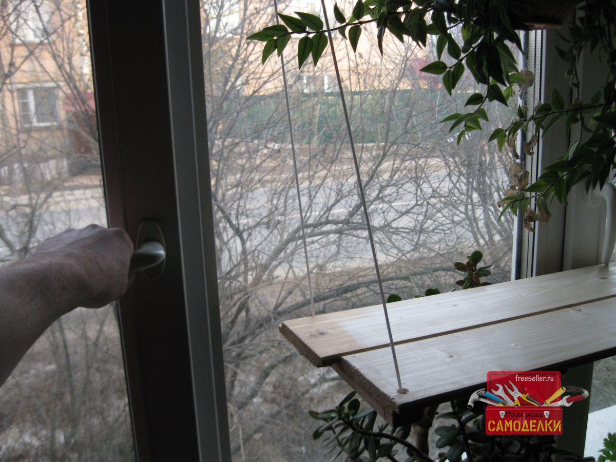 Таким образом, полка висит надежно и одна створка окна, свободно открывается.