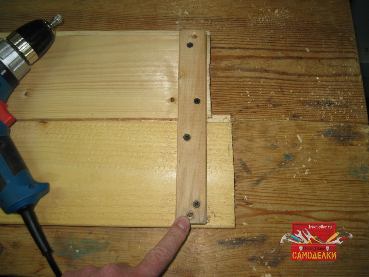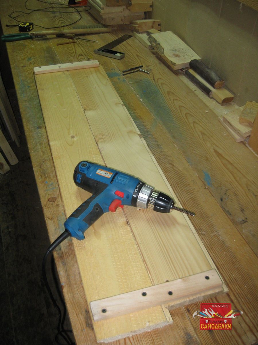 Ну, а затем, прикрутил эти планки к двум доскам вагонки, получив, таким образом, готовую полку.