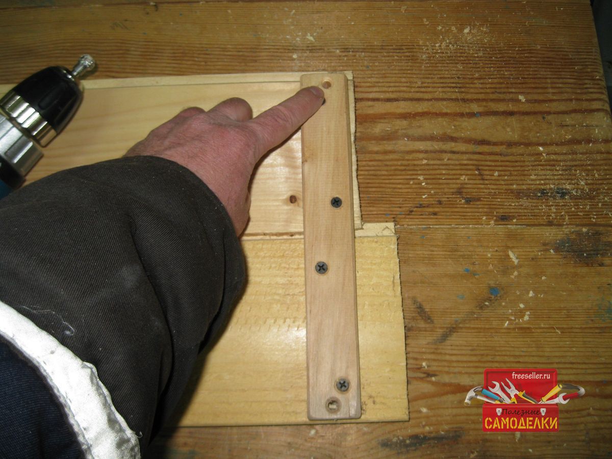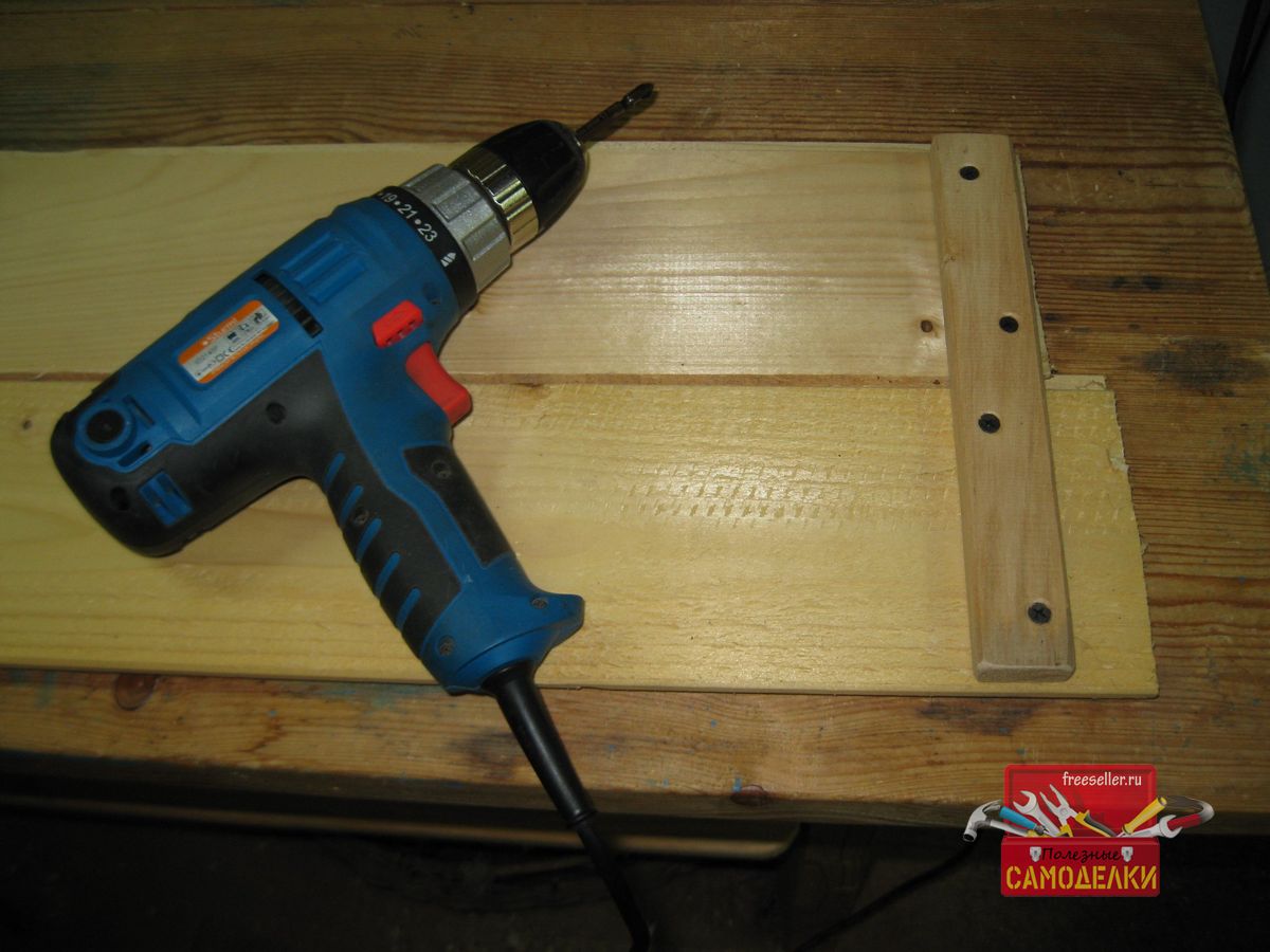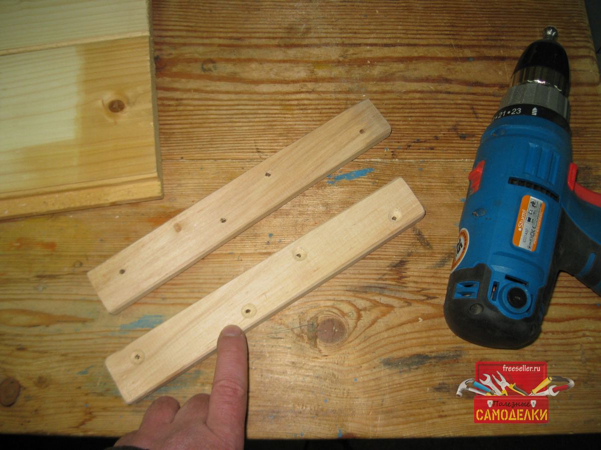 Сначала, я распилил на две части деревянную планку и просверлил в каждой части по четыре отверстия под шурупы, не забыв их раззенковать.