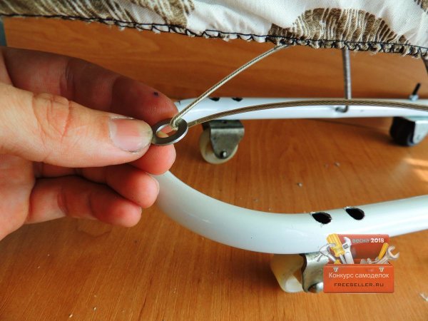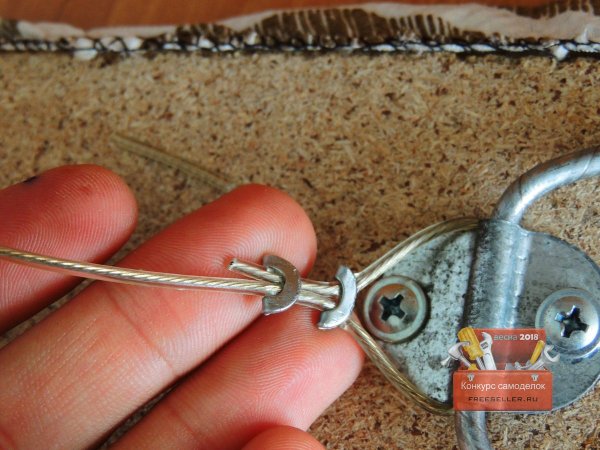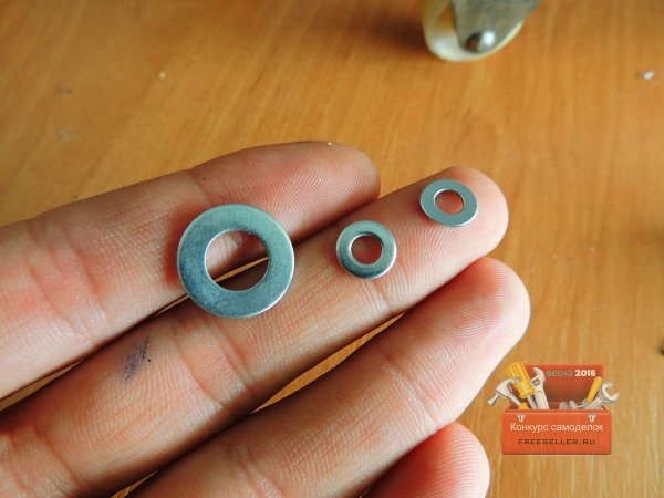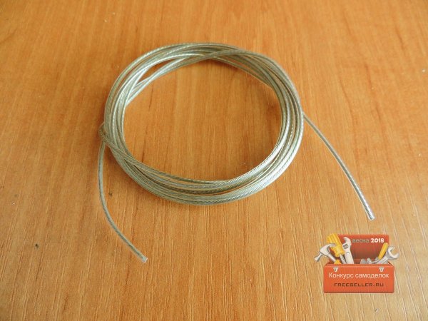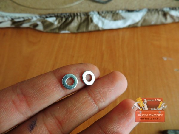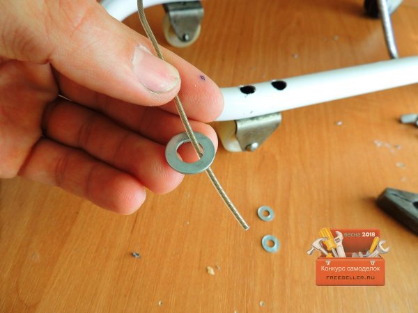 Далее я взял шайбочку большого диаметра и зафиксировал ее на тросике.![]()