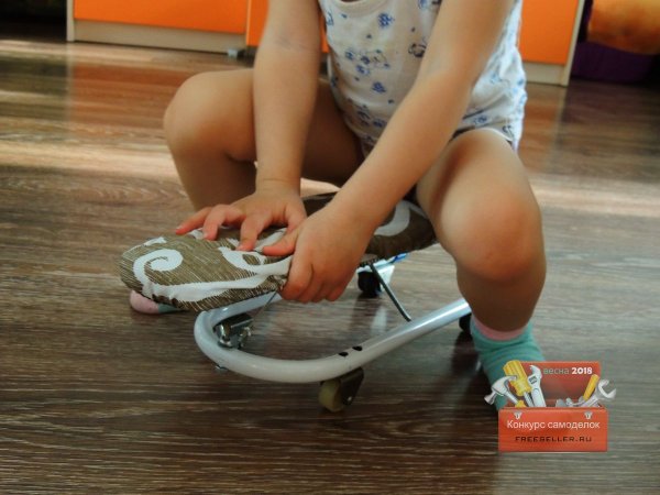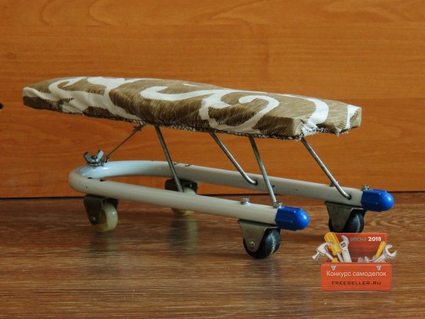 Хочу с вами поделиться одной своей необычной самоделкой. <.>У нас в семье есть одна ненужная вещь, которой мы еще ни разу не пользовались. Она просто лежит без надобности. Эта вещь называется гладильная доска для рукавов. Так вот, в один прекрасный день я заметил, что моя маленькая дочь ею играется, она садилась на нее сверху и ездила как на санках. Вот тогда ко мне и пришла идея сделать из нее мини толокар. Как это у меня получилось, вы сможете узнать, прочитав статью до конца. Для большей наглядности прилагаю полный фотоотчет и подробное описание.
