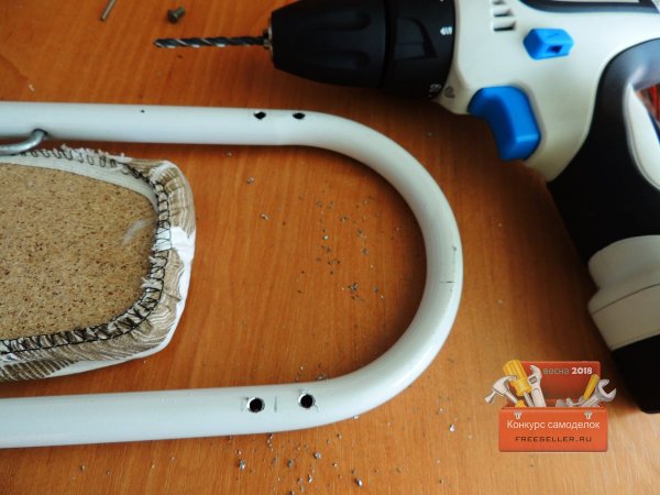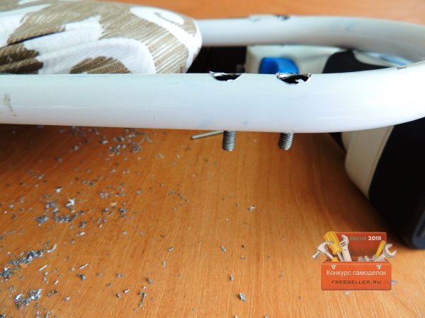 Далее в передней части нанес отметку для отверстия, в которое будет вкручиваться болт с гайкой-барашек для фиксации тросика.![]()