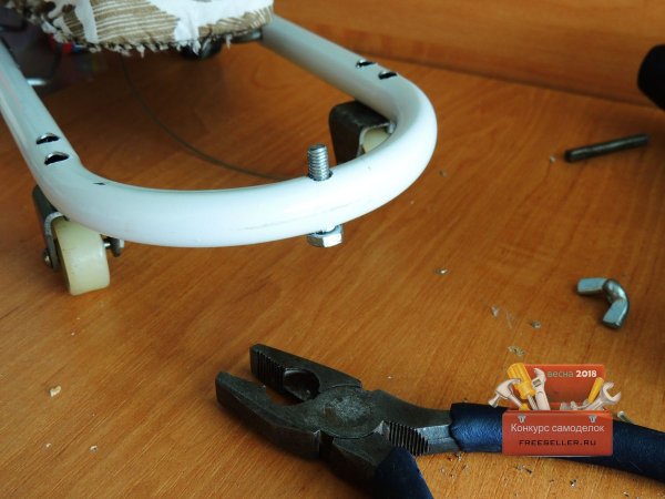 Затем принялся срезать торчащие концы болтов, так как они могли поранить ребенка.![]()