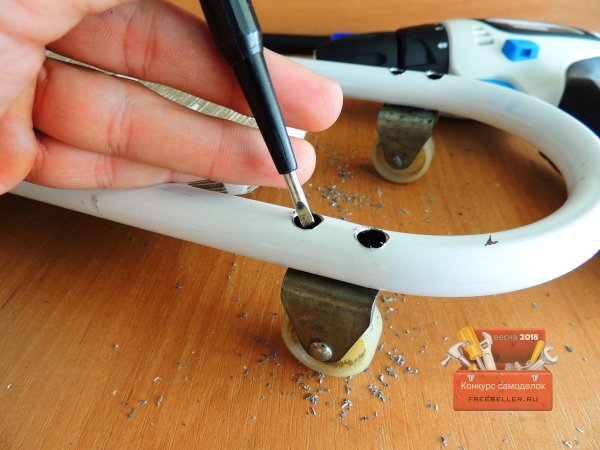 Далее принялся размечать и сверлить отверстия под вторую пару колесиков.![]()