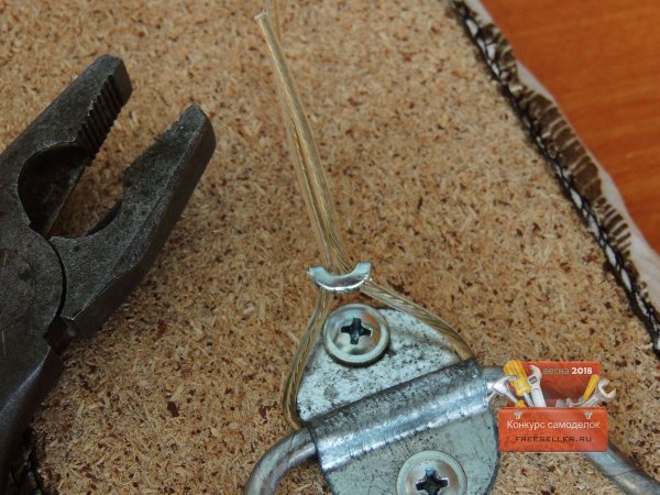 Далее зафиксировал его при помощи небольших шайбочек, одел их на тросик и сплюснул плоскогубцами.![]()