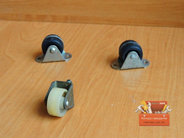Для того, чтобы мини толокар двигался я взял вот такие 4 колесика, они были сняты от какой-то старой мебели.![]()