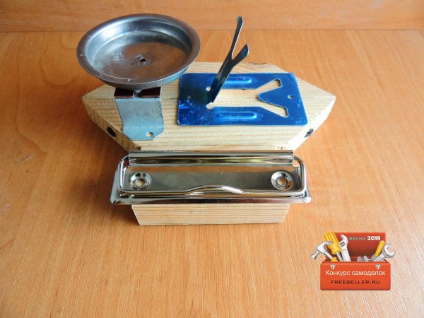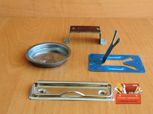 Далее взял все то, что можно было использовать для подставки, это прижимной механизм от планшета, блюдце для припоя, подставку из Китая в виде пластины.