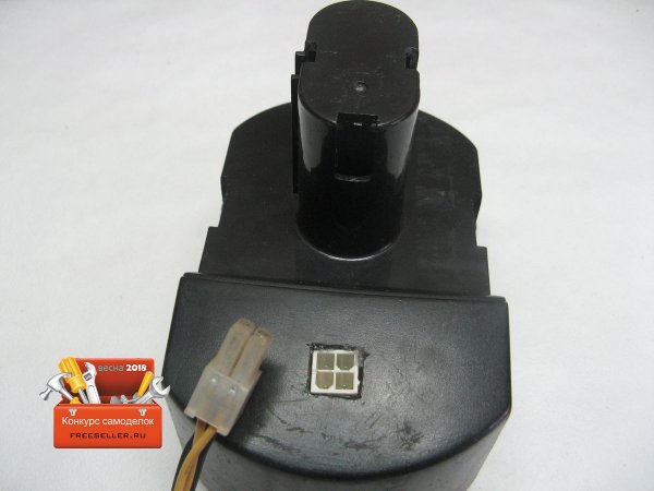 Вырезаем отверстие под разъем, и разъем фиксируем эпоксидным клеем. Клей высох, и закрываем аккумулятор. Откладываем в сторону.