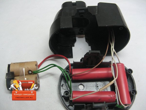 Аккумуляторы 18650 соединяем параллельно и к ним припаиваем старые элементы с контактной группой.
