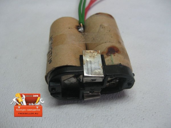 Разбираем старый аккумулятор и убираем часть аккумуляторов, оставляю только два с контактной группой.