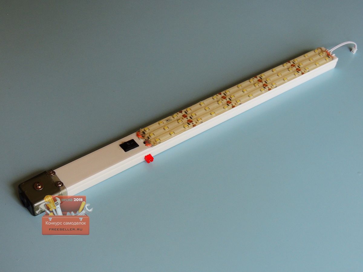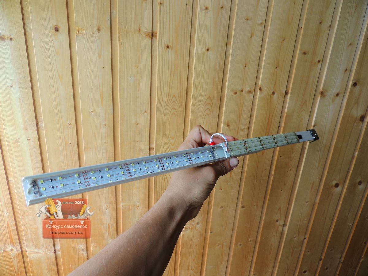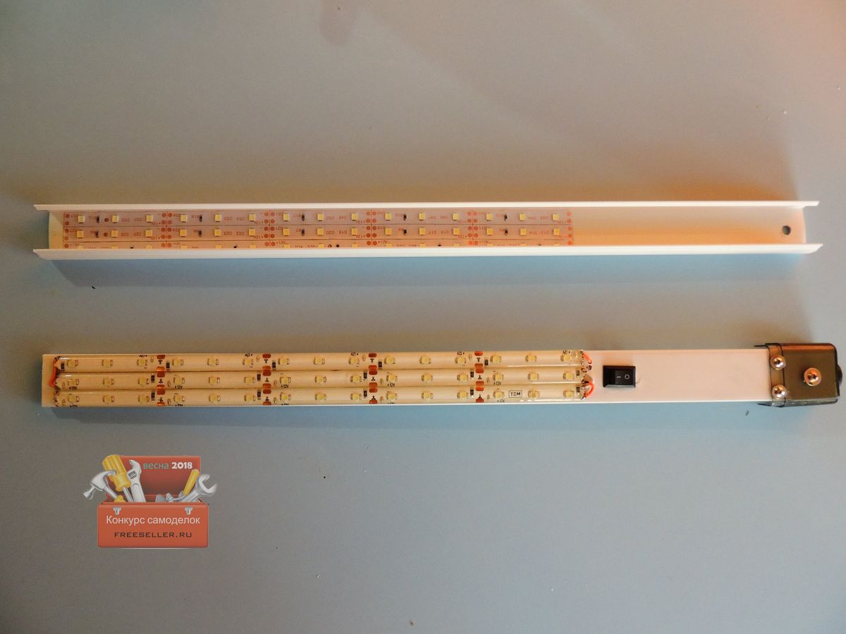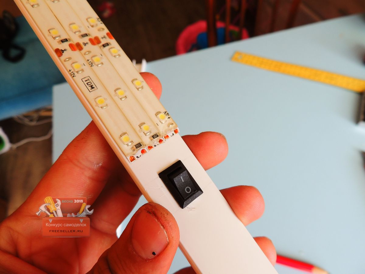 Далее в качестве освещения решил применить светодиодную ленту, нарезал три куска по 25 см.![]()