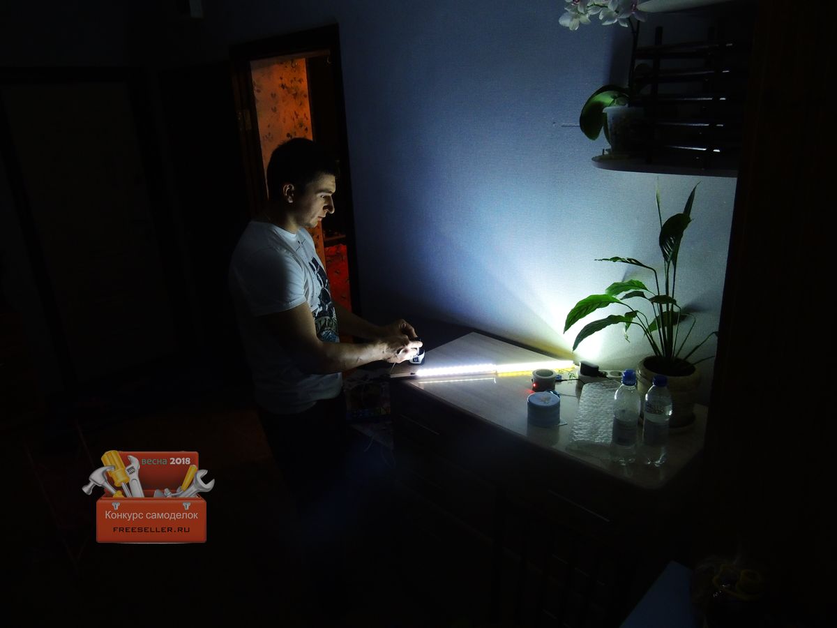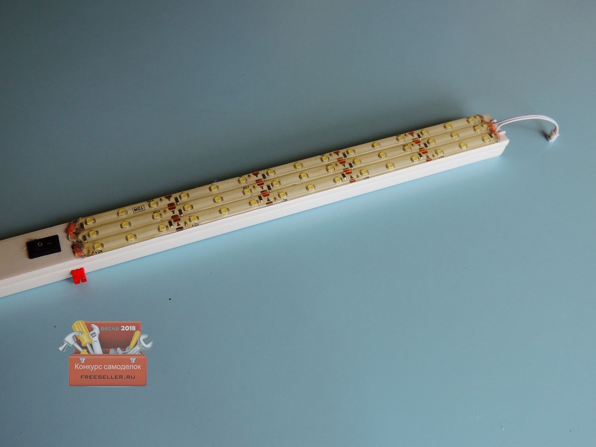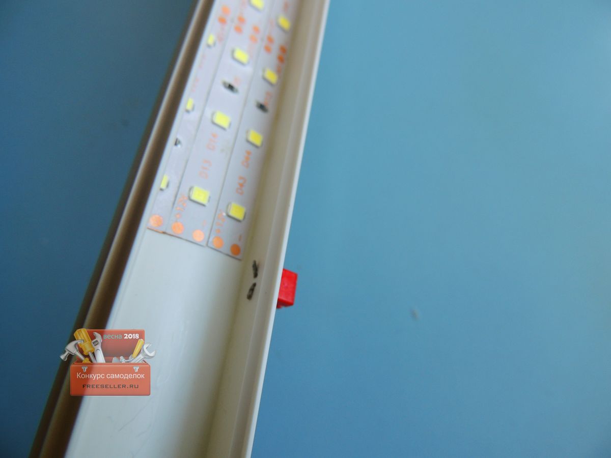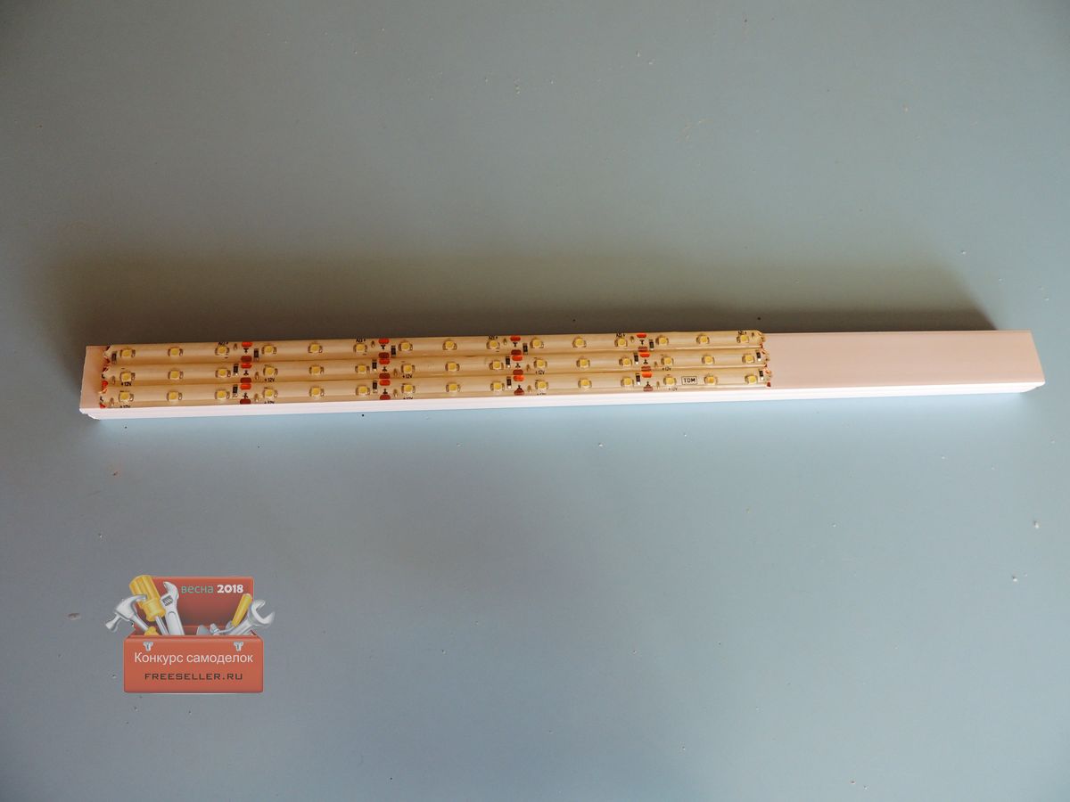 Хотел на этом остановится, но решил что можно кое что добавить, а именно дополнительные светодиодные полоски, внутренности короба позволяли это сделать. Взял еще три полоски по 25 см и наклеил.![]()