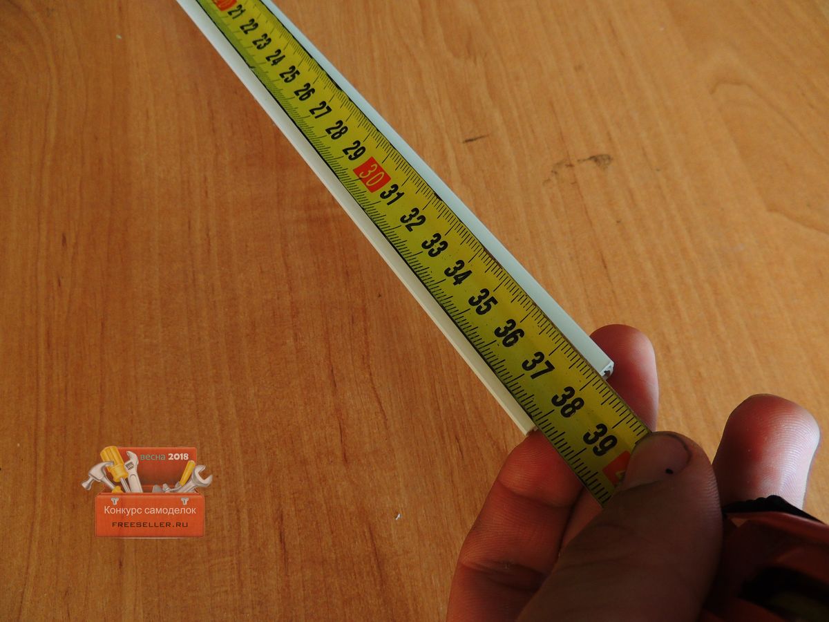 За основу корпуса решил взять короб для проводов размерами 1.8*2.5 см, отрезал кусок длиной 38 см.![]()
