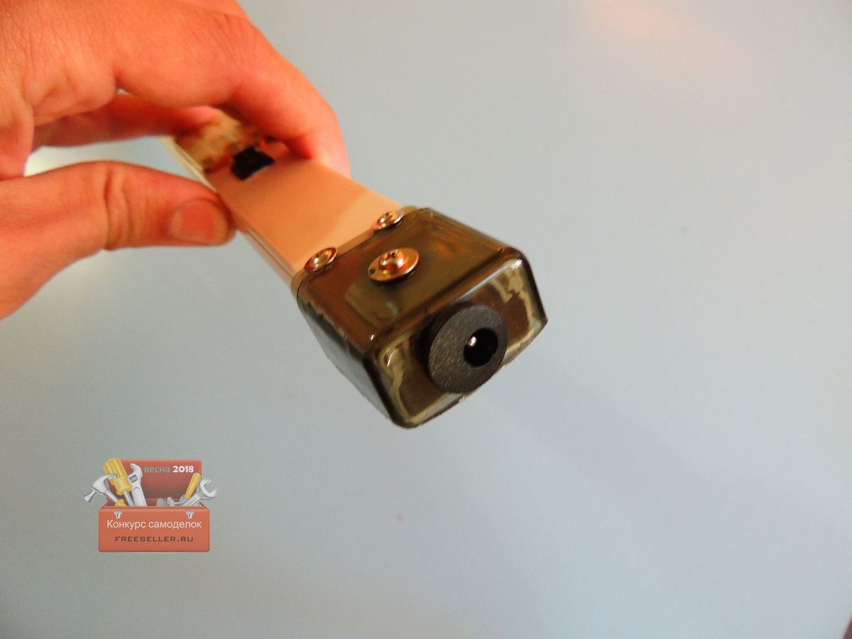 Затем для того чтобы установить гнездо под штекер, взял вот такой корпус от точилки, нижнюю часть срезал.![]()