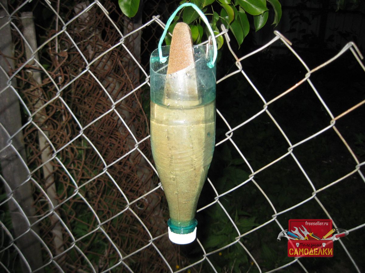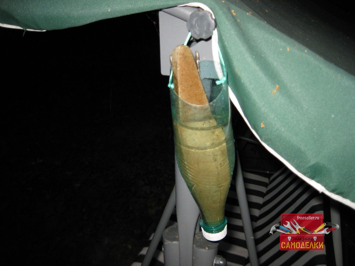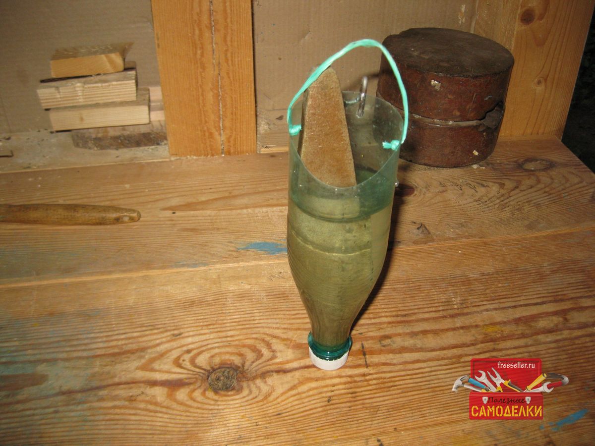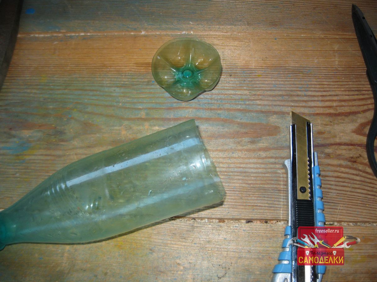 После этого, просверлил четыре отверстия в пластиковой бутылке для закрепления шпагата и специального крепления из проволоки.