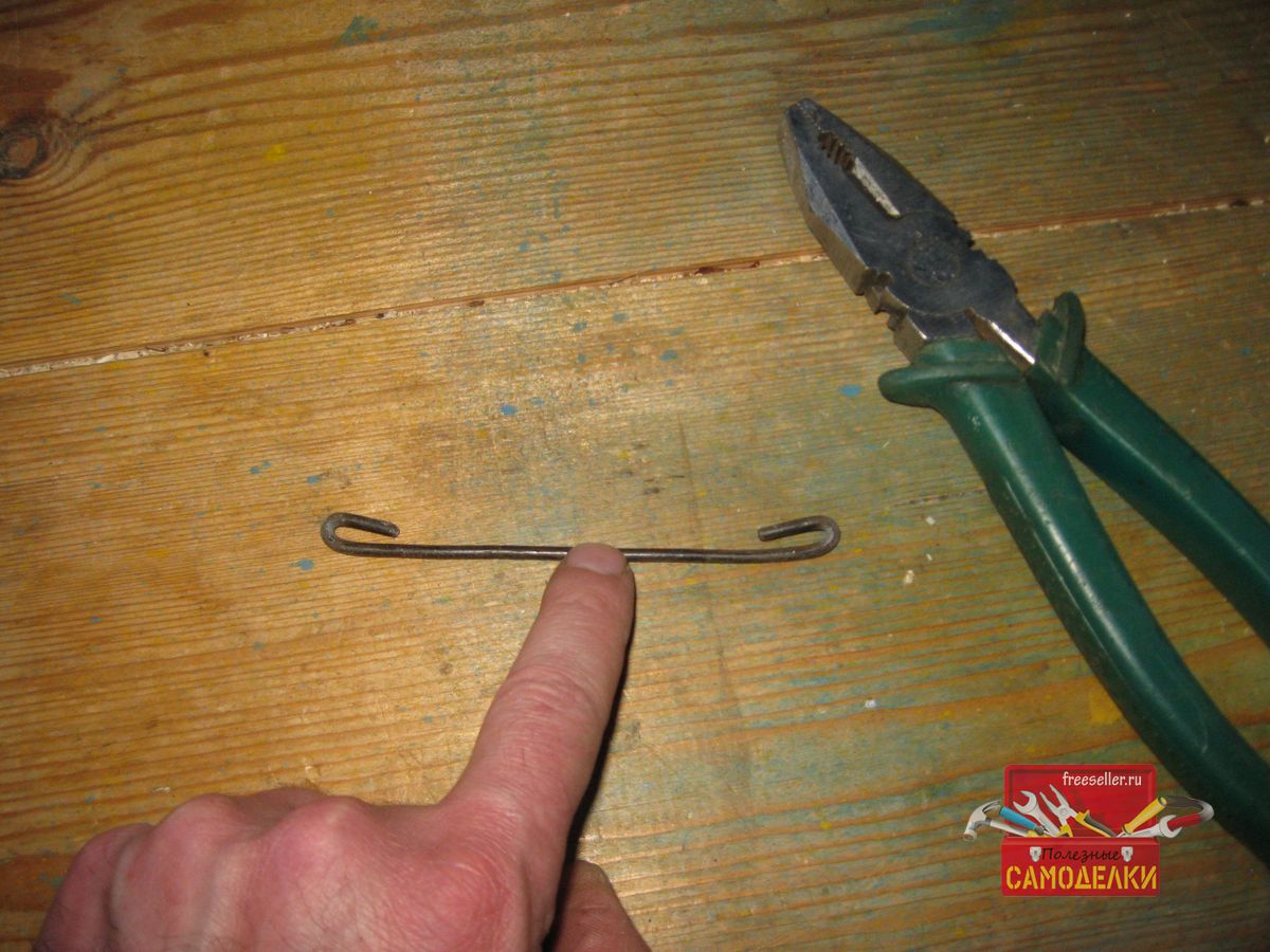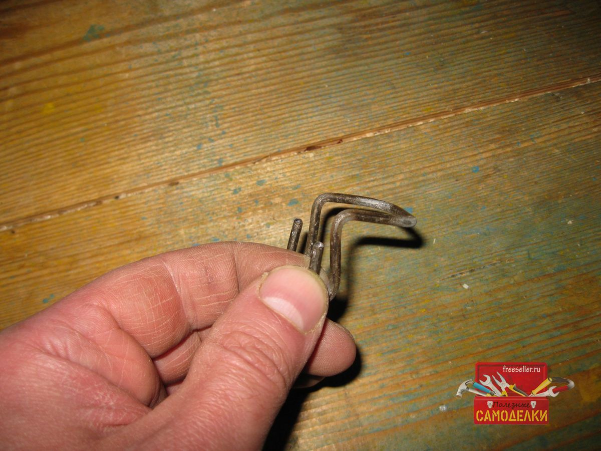 А затем стал поэтапно сгибать этот отрезок проволоки пассатижами, формируя двойной крючок.