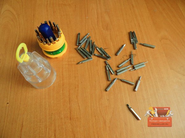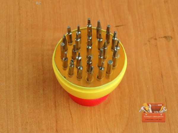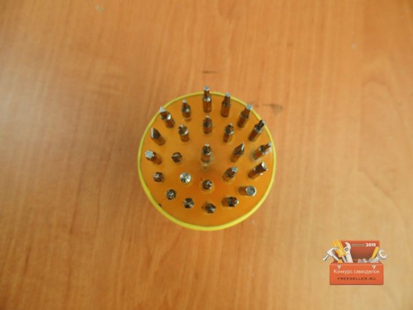 Далее взял одну биту и закрепил ее в патрон шуруповерта, и прошелся по всем отверстиям, таким образом, все биты четко заходили в них.![]()