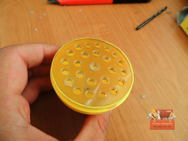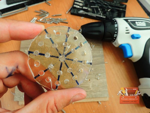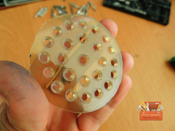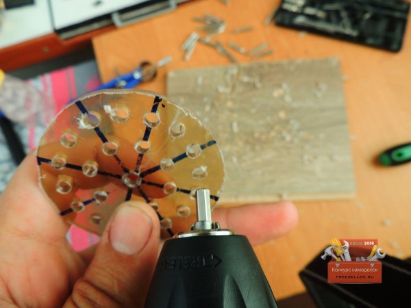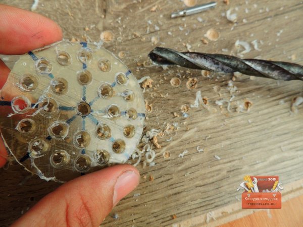 Когда все отверстия были готовы, сверлом большего размера сделал фаску.![]()