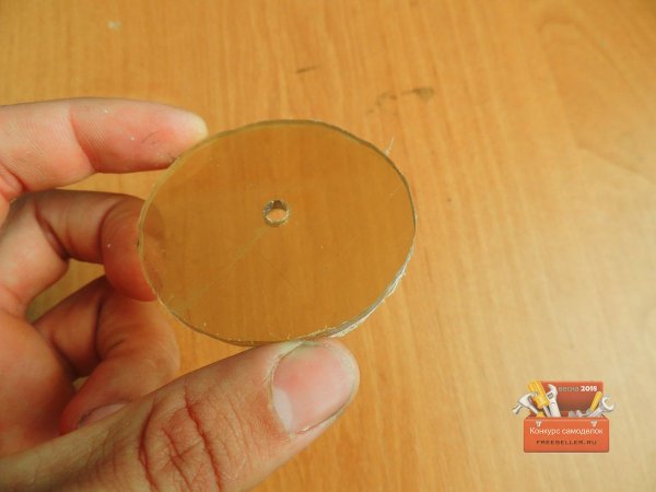 Далее я подобрал коронку по размеру одной из частей яйца, и вырезал круглую заготовку.![]()